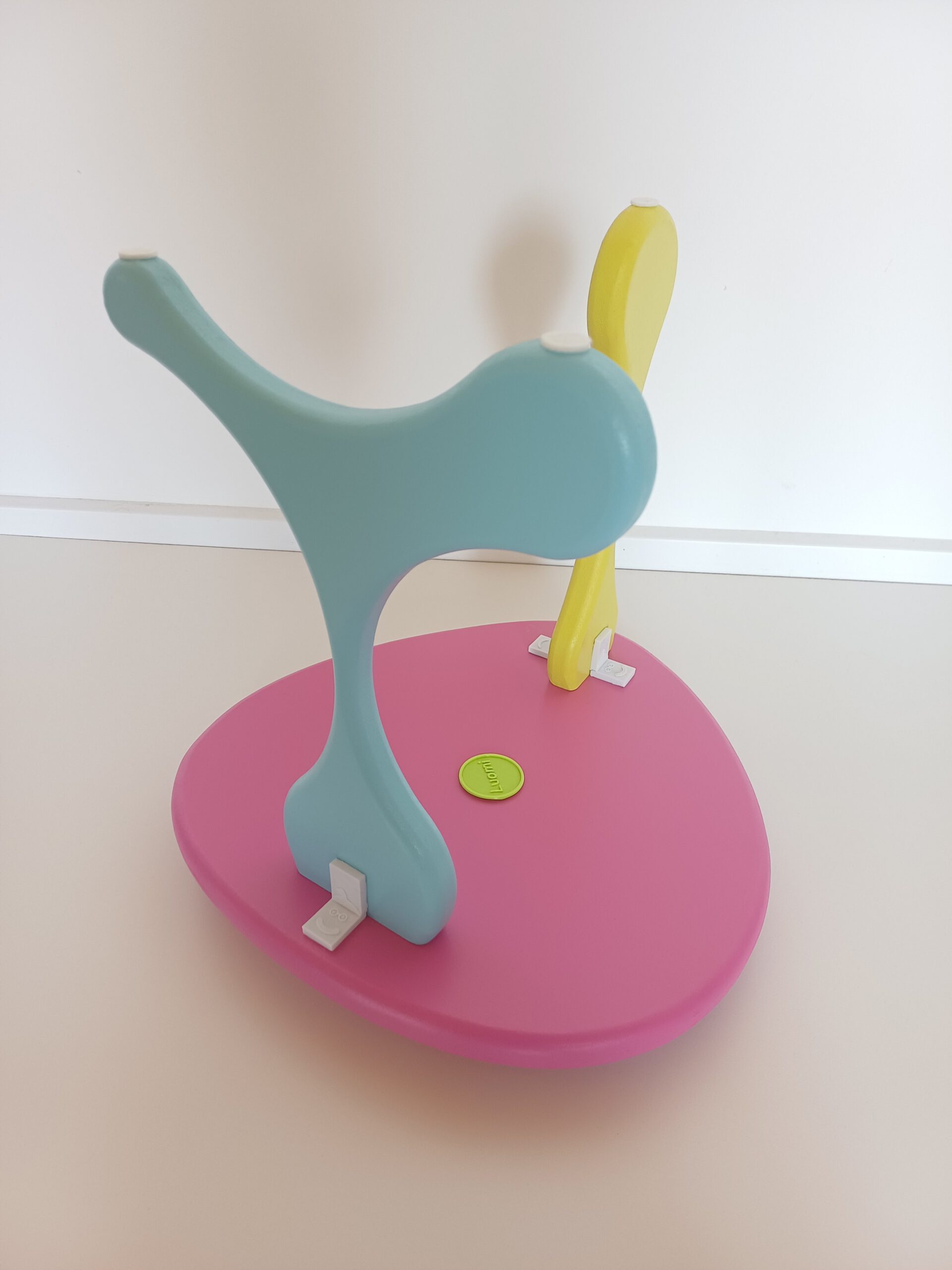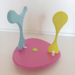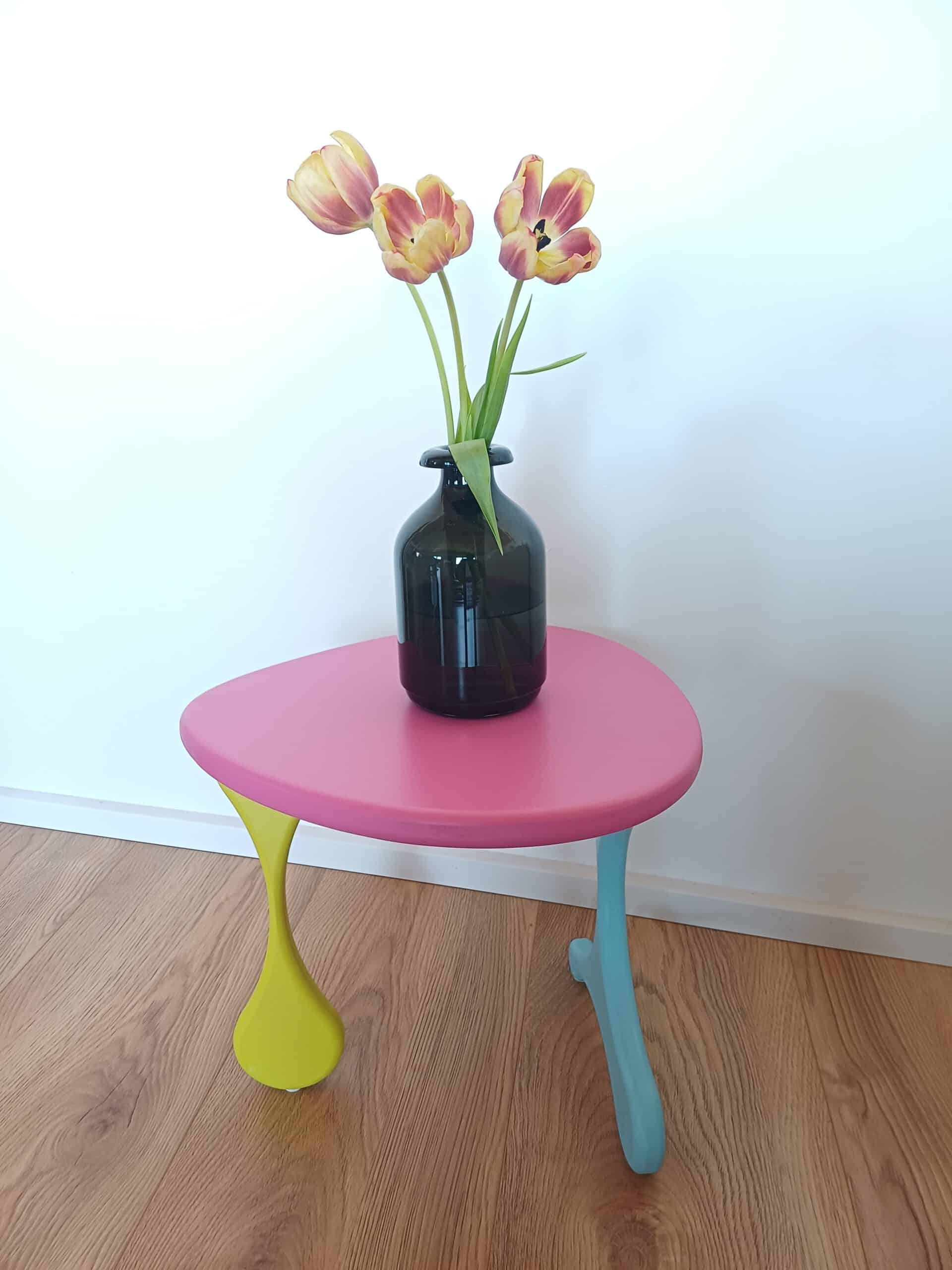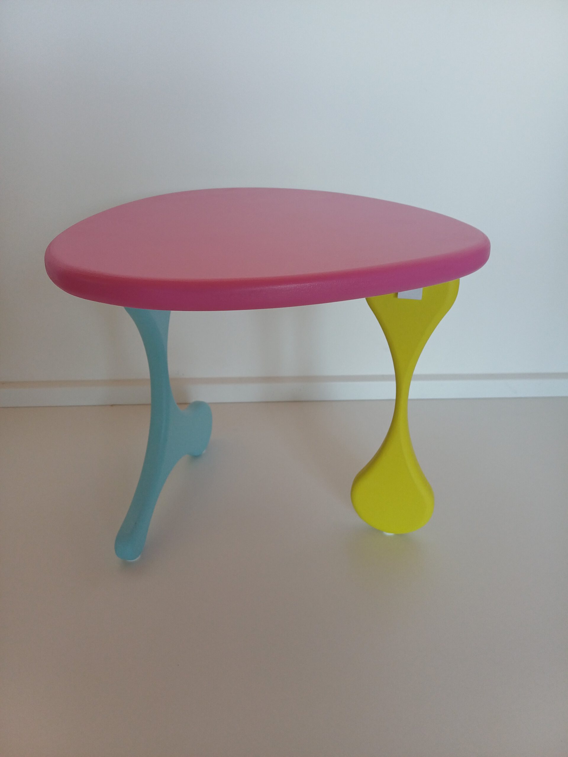 Das Möbelstück zeichnet sich durch eine moderne, unkonventionelle Formgebung aus, die zugunsten der Ästhetik eine gewisse Flexibilität in der Stabilität aufweist.